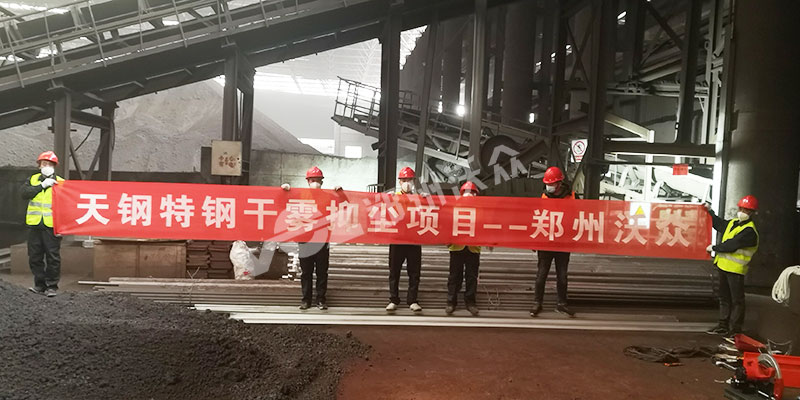 該項目位于天津鋼廠,針對煤炭的下料口傳輸帶進行定點干霧抑塵設備的安裝,對生產過程中揚塵集中治理,達到綠色環保生產的要求。