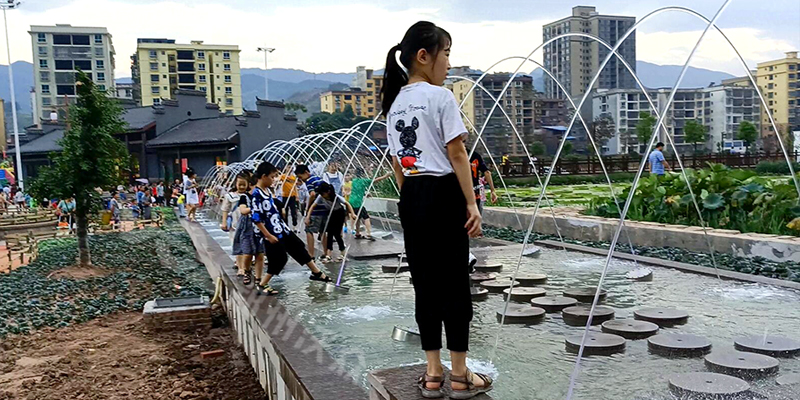 項(xiàng)目位于重慶的一個(gè)休閑度假農(nóng)莊,在水系景觀兩側(cè)安裝了互動(dòng)的跳泉,趣味性強(qiáng),飲料效果好,深受小朋友的喜愛。