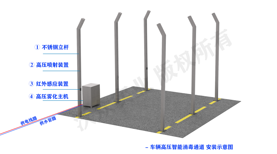 車輛是運(yùn)輸各種物資必不可少的交通工具,在為人們帶來方便的同時,由于運(yùn)輸路程、環(huán)境等因素的影響,車輛表面可能會攜帶各種病毒、細(xì)菌。在車輛進(jìn)入畜牧場、食品廠、飼料廠等區(qū)域時,車輛表面攜帶的病菌可能會造成病菌污染,破壞場區(qū)生物安全環(huán)境,引起動物、食品等衛(wèi)生安全問題。